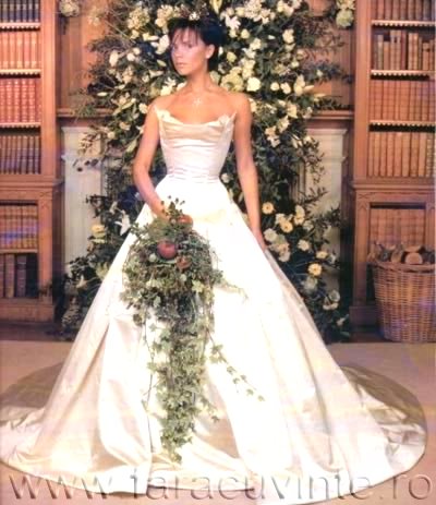 Rochia de nunta si buchet la nunta dintre Victoria Adams si David Beckham.